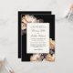 A beautifully rich and moody floral wedding invitation with off-white tulips, berries and leaves on a contrasting black background. This elegant design uses a combination of serif and script font pairings to convey your wedding details in sumptuous style. Personalize the sample text shown in the design template with your details.