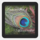 Rich peacock feather design features close-up photography image of teal, gold and green peafowl feather lying on a bed of rich, fresh green moss. Perfect for a summer wedding or special occasion. Wedding invitation and matching accessory set. © 2010 www.CustomInvitesOnline.com