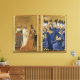 Canvases were wrapped in plastic with no paper or other protective wrapping. Arrived undamaged and product itself is beautiful. Printing true to shown