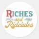Text (Optional): A short word or phrase placed in the centre of the circle, connecting the two themes. Options include: "Rich or Ridiculous?", "Laugh It Off", or "Fortune's Follies".