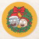 Rick and Morty | Holiday Wreath Pattern Round Paper Coaster