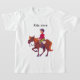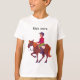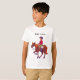 A young boy in a red shirt, green breeches, and a helmet sits upright on a relaxed, reddish-brown horse, practicing his riding skills. The style is friendly and approachable. Text: "Ride more" Emotion: Calm, steady, and underscores the desire to spend more time enjoying the simple pleasure of riding and practice.