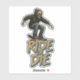Ride or die! Featuring a diehard skateboarding skeleton grinding it out in the afterlife. This hoodie clad skeleton graphic is peak skater dark humor. Show off your dark side with this funny sticker. • Sticker available in glossy white, matte white, and transparent. Transparent stickers show best on light surfaces. For darker items, a white sticker base is recommended for better visibility and contrast.