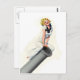 Vintage pin-up picture from a classic age. A fun, sassy picture of a retro pinup pose. Female Sailor riding the end of a cannon.