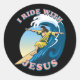 Ride With Jesus | Surfing Jesus Illustration Classic Round Sticker