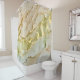 Appréciez l'art unique dans votre salle de bain. Tons terre de beige translucide, vert et or métallique. Flacons d'alcool liquide couleurs d'encre dans de beaux tons de terre pastel. Art abstrait original de l'artiste internationale Pauline Benjes. Rideau de douche Abstrait Beige Green Gold Pastel.