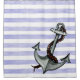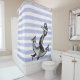Aquarelle originale peinte par Sandra Gale, avec une ancre métallique audacieuse et une grande corde enroulée autour. Des rayures translucides peintes horizontalement font un arrière - plan nautique aquatique pour ce rideau de douche d'été. Idéal pour les bungalows plage et les maisons de plage !