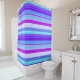 Couleur violet bleu créatif rideau de douche rayé design. Décor de la salle de bains dans des tons bleu violet rayé. Unique décoration créative de douche à rayures bleues.