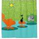 On dit que les chiens ont des propriétaires et que les chats ont du personnel. Le félin de ce rideau de douche à Kitty Age de l'espace rétro ne pouvait pas être d'accord plus! Décoré dans un style des années 1960, le design minimaliste de l'art présente un chat noir élégant dans un salon moderne du milieu du siècle. La chambre sophistiquée est dotée d'un mur en pierre vert. La moquette est aqua avec des ombres turquoises. Les meubles de la chambre comprennent un jaune, un croquis de lumière Spoutnik, un transat orange avec un pied assorti et une télévision verte avec des oreilles de lapin. Le chat noir chanceux est perché sur le tabouret devant la télévision. Son spectacle favori est allumé ! Sur l'écran de télévision, on peut voir une famille de télévision classique en noir et blanc résoudre tous les problèmes de la vie dans une émission d'une demi-heure. Ce design est parfait, si nous le disons nous-mêmes.
