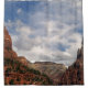 Ce rideau de douche coloré est orné de ma photographie d'art original de beaux rochers rouges et du ciel bleu du parc national de Zion, Utah. Cadeau de mariage ou de pendaison de crémaillère idéal pour les jeunes mariés ou toute personne qui aime la nature et le plein air. Tous droits réservés © 2015 Alan & Marcia Socolik.