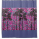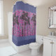 Palmiers, en silhouette, contre un ciel rose et bleu. Le ciel est créé avec des points de couleur individuelle en rose, et en blues, dans des tailles différentes. Arrière - plan en gris-bleu moyen peut être modifié à votre choix.