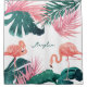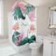 Rideau de douche personnalisé - avec flamants roses et feuilles tropicaux.