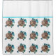 Poisson dans trois rangées sous une bande d'aqua horizontale. Les poissons ont des corps en céramique avec de grands yeux, des écailles fleuries et des nageoires en fil bleu et vert. Oeuvre originale de Nora Chen.