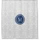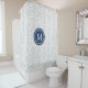 Rideau en douche floral élégant classique de motif de damassé de monogramme personnalisable dans le bleu marine gris-clair et foncé et le blanc.