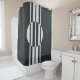 Motif de style mod abstrait rétro en finition martelée gris fusain et blanc avec cercles et rayures en alternance de couleurs.