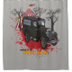 Accueil aux clowns effrayants d'exposition de monstres dans la rétro voiture funèbre effrayante avec la tente de cirque et les arbres morts