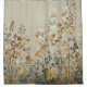 This shower curtain features an ethereal, meadow-inspired landscape rendered in a delicate watercolor style. Stems of wildflowers and clover-like foliage stretch upward against a warm linen-textured background, creating a tactile, fabric-like appearance.