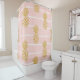 Rideaux De Douche Ananas en or, Arrière - plan d'été rayé.