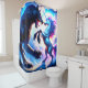 Ce rideau de douche a une image artistique d'une licorne et d'un immense loup qui se bat dessus.