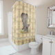 Unique rideau de douche d'art, avec une mère d'éléphant Aquarelle et son bébé, sur un arrière - plan de pierre de sable faux, et texte ou nom personnalisé sur bande brun clair. Modifiez ou supprimez facilement le texte en cliquant sur le bouton Personnaliser.