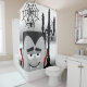 Éffrayant rideau de douche d'Halloween en gris, noir, rouge et blanc caractéristiques Dracula avec des crocs, un candelabra noir, des toiles d'araignées, et des araignées!
