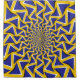 Arrière - plan bitmap d'illusion de mouvement optique. Des flèches bleues circulent autour du centre sur l'arrière - plan jaune.