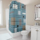 Un motif moderne moderne abstrait du milieu du siècle avec des lignes noires et des formes colorées carré et rectangle en bleu et marron.