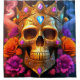 Ce rideau de douche est orné d'un motif crâne d'art.
