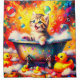 Ajoutez une touche de charme ludique à votre salle de bain avec notre rideau de douche "Kitten Bubble Bath". Ce design charmant comprend un chaton mignon assis à l'intérieur d'une baignoire de pieds de griffe vintage, tendant vers des bulles de savon flottantes. Autour de la baignoire, des éclaboussures de peinture vibrantes et quatre canards en caoutchouc créent une scène fantasque et animée. Parfait pour les enfants et les amoureux des animaux, ce rideau de douche apporte un peu de plaisir et d'énergie au temps du bain, ce qui en fait une expérience délicieuse et mémorable pour tous les âges.
