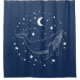 Illustration de baleine avec une lune et des étoiles sur un arrière - plan bleu foncé.
