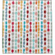 Ce rideau de douche a un design moderne du milieu du siècle de cercles et ovales entrecoupés de couleurs rétro entrecoupés sur un champ de blanc.