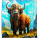 Ce rideau de douche a un bison de dessin animé représenté dessus.