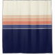 Le rideau de douche rétro/mod dans les tons bleu, corail et pêche est une pièce de décoration simple, amusante et classe qui ajoute une couleur amusante à votre salle de bain.