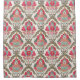 A stylized boho medallion patterned shower curtain, featuring floral-inspired motifs in raspberry pink, aqua, and warm ochre on a soft neutral background. The symmetrical layout blends structure and flow, creating a vibrant repeat design. A lively color palette and crisp detailing make it easy to layer into modern boho or eclectic interiors.