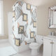 Un design d'art abstrait au style moderne du milieu du siècle, avec des formes boomerang des années 1950 et des carrés en rose poudreuse, marron sépia et gris cendré.