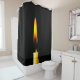 Cire jaune brûlante Bougie contre arrière - plan noir. Partie supérieure de la bougie. rideau de douche pour décorer votre salle de bain pour le plaisir et bonne humeur