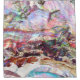 Cette paillette est un mélange fascinant de texture et de couleur, créant un paysage onirique et abstrait. Les paillettes chatoyantes reflètent la lumière dans un kaléidoscope de teintes pastel, y compris les roses douces, les bleus, les verts et les violets, entrecoupés de tons terre de brun et de crème. La composition stratifiée évoque un sens du mouvement, ressemblant à de l'eau courante, des collines ondulantes ou des tissus drapés. Les détails complexes et la qualité irisée donnent à la pièce une énergie dynamique et presque éthérée, invitant les spectateurs à explorer sa profondeur et sa complexité.
