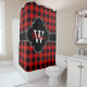 Rouge et noir Buffalo Check Tartan Nom du plat Monogramme initial sur Quatrefoil noir avec ruban Customisez ceci avec votre nom et monogramme ou autre texte. Vous pouvez également modifier la police, ajuster la taille de police et les couleurs de police, déplacer le texte pour ajuster l'espacement des lettres, ajouter des champs de texte, etc. Veuillez noter qu'il s'agit d'un design graphique numériquement qui est transféré au produit sous-jacent. Le design lui-même ne contient pas de ruban, étiquettes, métaux, gaufrage, etc. 2015 ©FantabulousPatterns Tous droits réservés