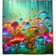 Ce rideau de douche a une scène de champignon dessus.