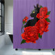 Rideaux De Douche Chat noir Roses rouges pourpres