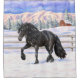 Rideaux De Douche Cheval Noir Friésien Roulette Trottant Dans La Nei