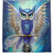 Blue Steampunk Owl, ce design présente une chouette bleue steampunk aux yeux bleus.