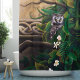 Un homme vert avec un mignon ami de hibou assis sur une branche. Un noeud celtique travaille en pierre derrière eux sur un mur