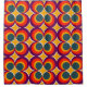 Ce rideau de douche a un design moderne du milieu du siècle de cercles concentriques dans les couleurs des années 1970 avec des étoiles entre chaque groupe.