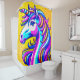 Ce rideau de douche a une licorne colorée dessus.