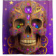 Ce rideau de douche a un crâne et design de bijoux sur elle.