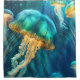 Des méduses bleues, vertes et dorées dérivent dans les eaux bleues de l'océan sur ce rideau de douche. Parfait pour tous ceux qui aiment l'océan et la vie marine.