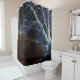 Dark Side 7 - Arbres et étang en noir, blanc, bleu, marron et rouge © Alan Harman Photography 2022. Tous droits réservés. www.alanharmanphotography.com 050422 rideau de douche