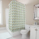 Motif rideau de douche design en fer à cheval dans des couleurs terreuses, dont les tons vert, marron et bleu avec blanc.