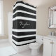 Rideaux De Douche Coutume rayée blanche noire de nom de monogramme